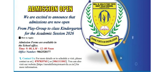 About our institution here. Knowing full well the need of today’s world and keeping this in mind, our website is created. Viewers, Mrs N Hill’s Tiny Tots East Ville School is the place where education is focus in the all-round development of a child. Here you will find teachers students, parents and the management works together.